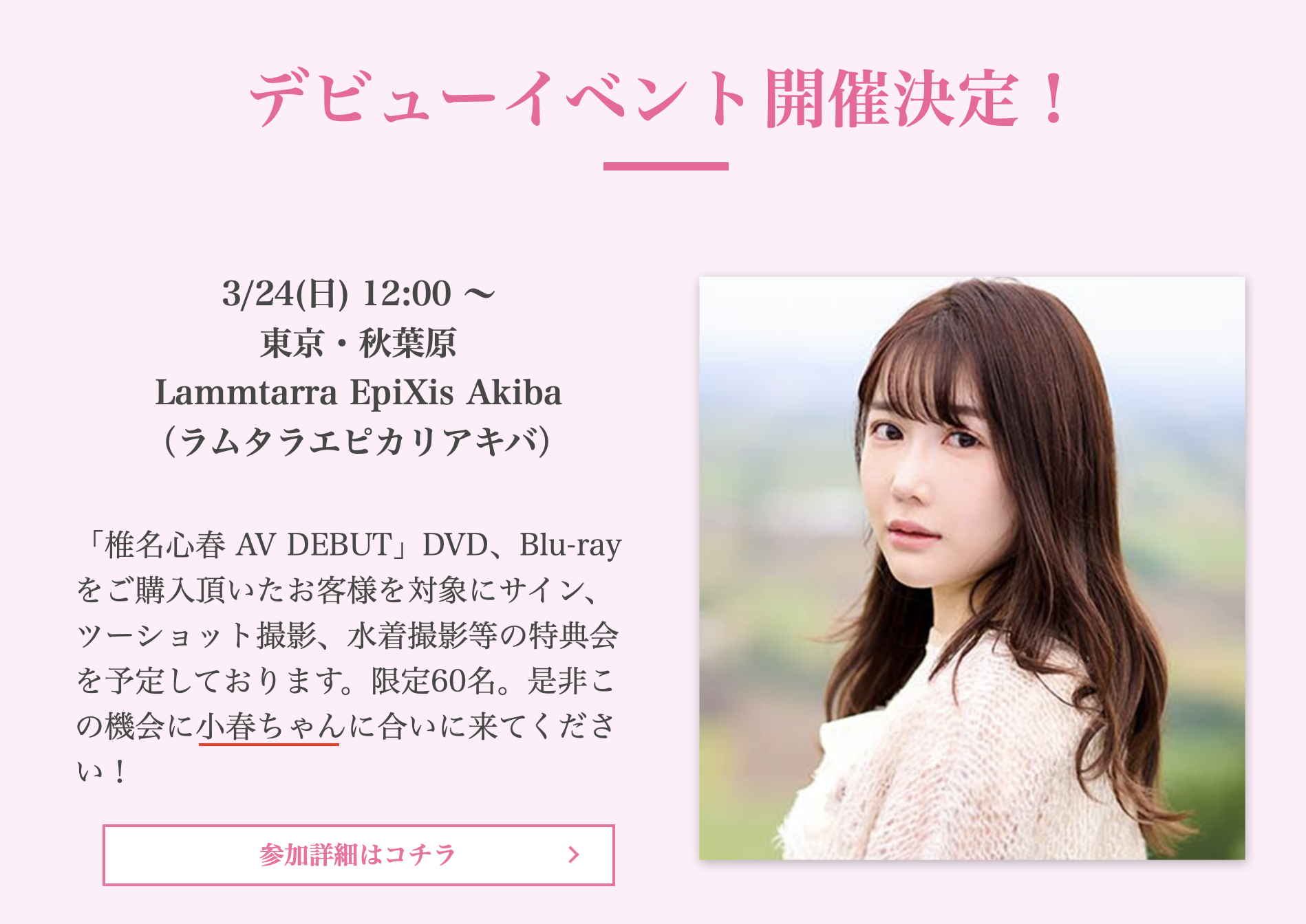 为什么我会觉得SOD STAR在吊大家胃口呢?因为除了剧照和宣传影片都没有外她什么都有了,你可以马上追踪她的X(https://twitter.com/ShiinaKoharu)、她也有IG可以找(https://www.instagram.com/ shiinakoharu/),就连出道的第一场活动也定好了ー虽然把她名字打错了,但从SOD STAR的一切做法就知道这是一位准备好了、而且片商也对她超超超超超超级有信心的,敬请期待〜
