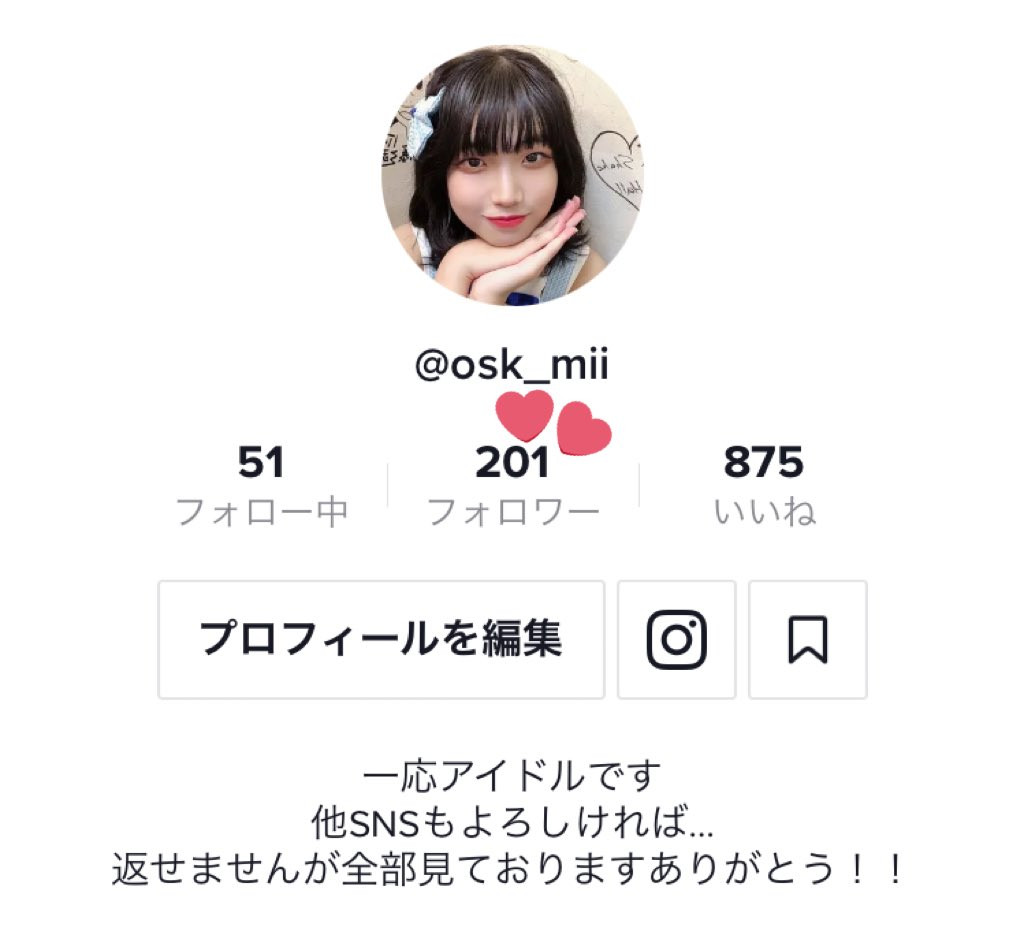 事情是这样的,2021年的暑假,这位宇佐美みい(宇佐美未依)是以名古屋地下偶像团体「OS☆K」一员的身分站上舞台,不过她待的时间很短,11月休业,隔年4月(2022/4)就退团,理由是要专心读书ー也就是说她实际活动的时间不到半年,把IG翻出来也可以发现她才200个追踪,我没有少打一个零,就是两百个追踪⋯