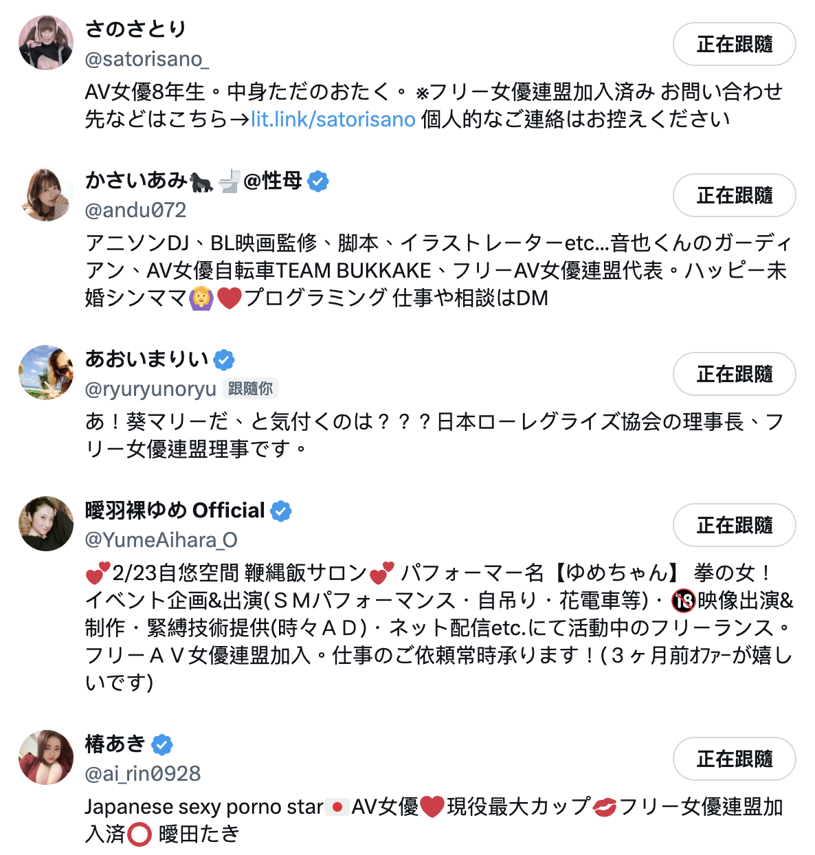 这也就是为什么フリー女优连盟(Free女优联盟)得以成立并且获得认可的原因,资历这么深的优秀女优不太会动了,然后到了这个资历还会再换经纪公司的女优大多没那么有影响力(就是没那么红了),要操作起来没那么容易ー在X上可以轻松搜到参加这个联盟的女优,包括かさいあみ(河西亚美)、さのさとり(佐野里莉)以及刚加入的真琴,她们都曾经辉煌,现在则大多什么都做,这样大家就懂这个自由同盟的女优是什么等级⋯