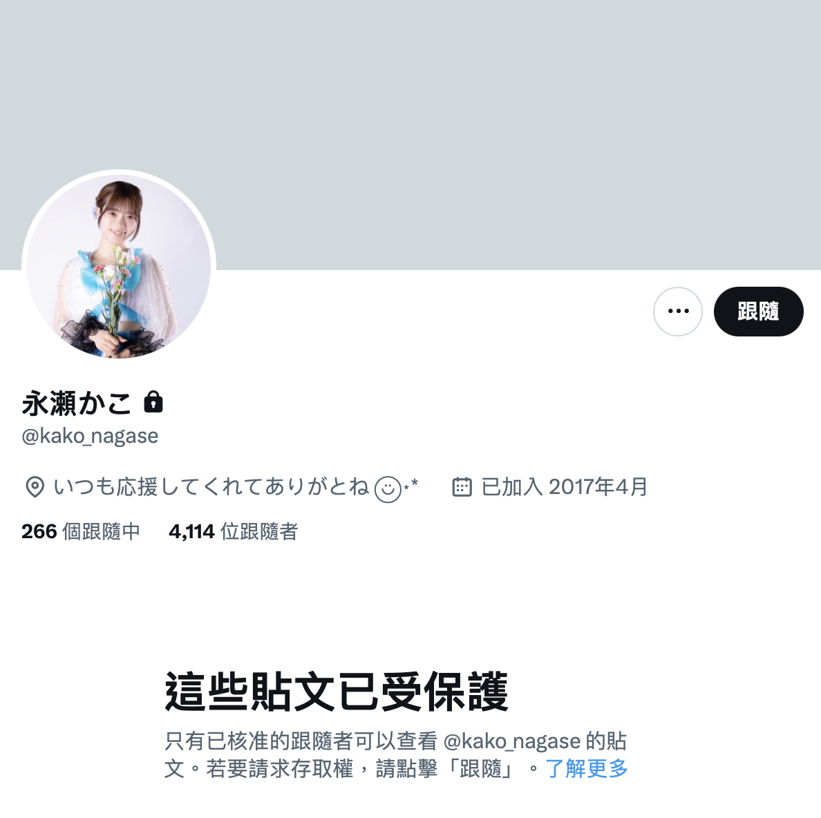 要找到她的照片不难,社群也还在(https://twitter.com/kako_nagase)但锁起来了,应该是无码作品曝光后很多人去朝圣让她不堪其扰所以不给看了;而她所属的偶像团体也在前天发表声明,上面是这么说的: